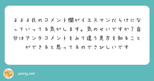 どうもよよよです まったく同じ意見です、同意や賛同意見もありがたいですが、批判的な意見を通して自分とは違う価値観を垣間見たかった 私もそう思ってコメント欄で自由な発言を許していましたが、それだけではダメなんですよ、それでは違う価値観を見るこ…